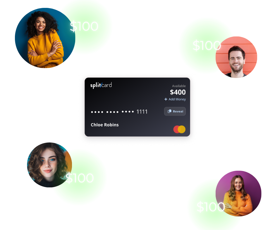 Sometimes friends and family want to help you pay for a purchase. Whether it is a new laptop for school or a wedding dress, Splitcard lets you invite people to pitch in for a purchase. Watch your goal progress and people join and make your purchase when the funds are ready.