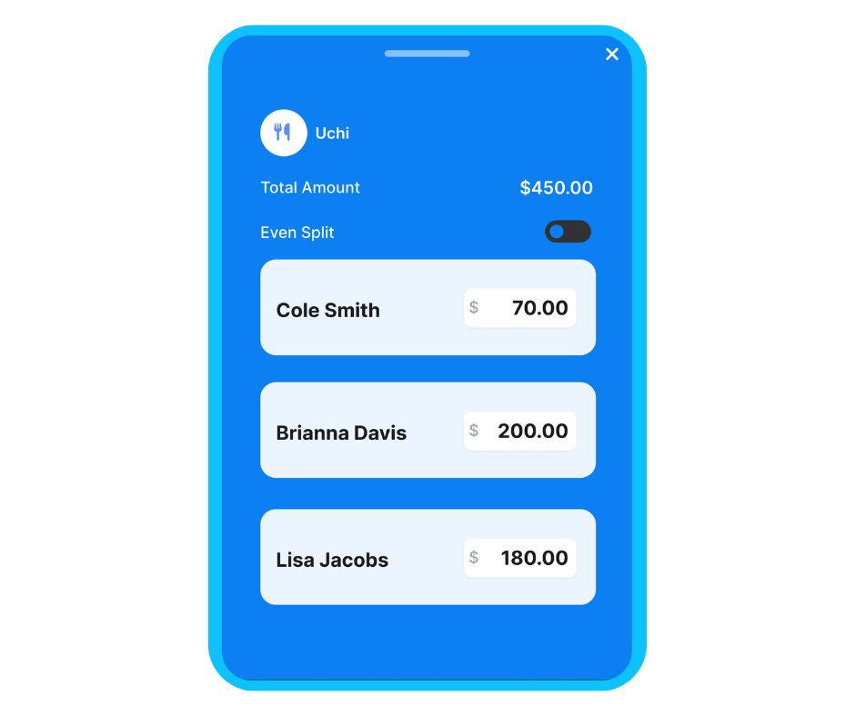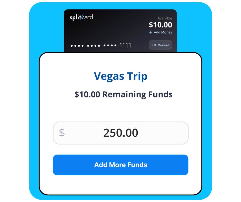 Use Splitcard when you have multiple purchases with your group and need to keep adding to the group’s fund. Perfect for weekend adventures where everyone is splitting the cost of lodging, food, transportation. Splitcard’s dashboard gives full transparency and helps everyone know what has been spent and what everyone owes.
